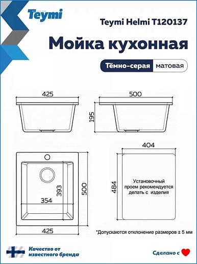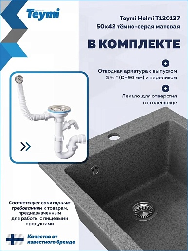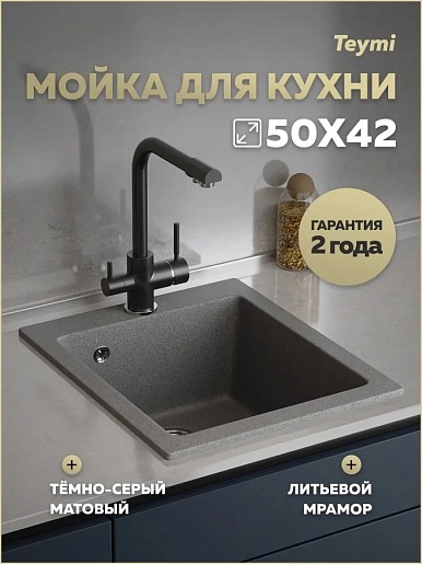 Teymi Мойка кухонная Helmi 42 темно-серая