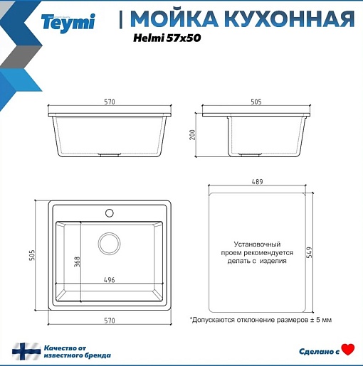 Teymi Мойка кухонная Helmi 60 черная