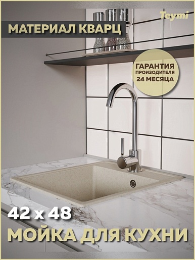 Мойка кухонная кварцевая Teymi Helmi Smart 42 бежевая - арт. T120111.