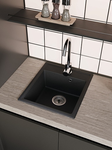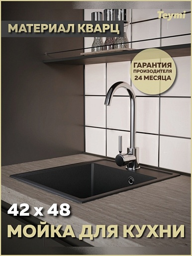 Мойка кухонная кварцевая Teymi Helmi Smart 42 черная - арт. T120108.