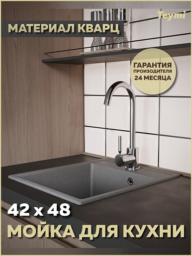 Мойка кухонная кварцевая Teymi Helmi Smart 42 серая - арт. T120110.