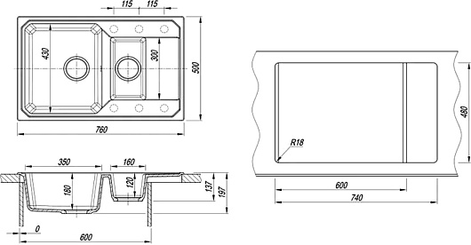 • Размер дополнительной чаши (ШxГxВ): 160 х 300 х 120 мм.