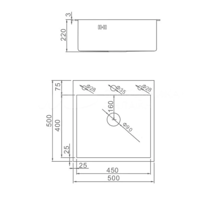 - Мин. ширина шкафа для монтажа мойки: 50 см.