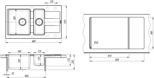 - Размер дополнительной чаши (ШxГxВ): 170 х 400 х 170 мм.
