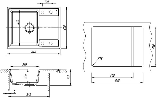В комплекте: мойка, сифон со слив-переливом, крепеж.