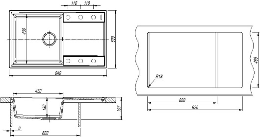 В комплекте: мойка, сифон со слив-переливом, крепеж.