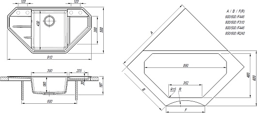 Мойка кухонная угловая Dr. Gans Крона 910 везувий - арт. 29.040.D0910.410.