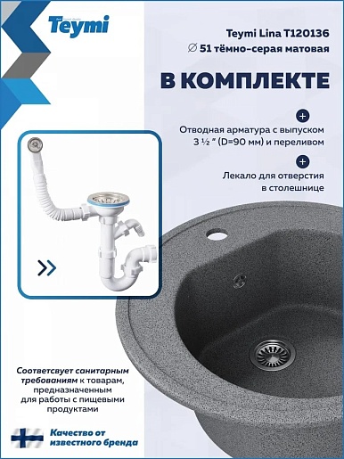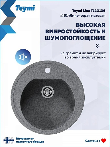 Teymi Мойка кухонная Lina D51 темно-серая