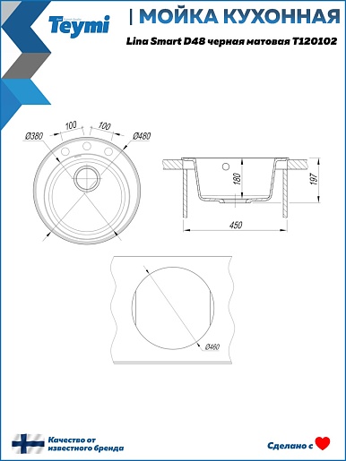 Мойка кухонная Teymi Lina Smart D48 черная - арт. T120102.