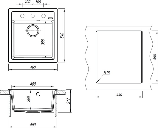 - Размер чаши (ШxГxВ): 400 х 365 х 200 мм.