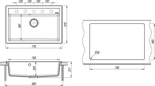 - Установочный проём (ШxГ): 750 x 490 мм.