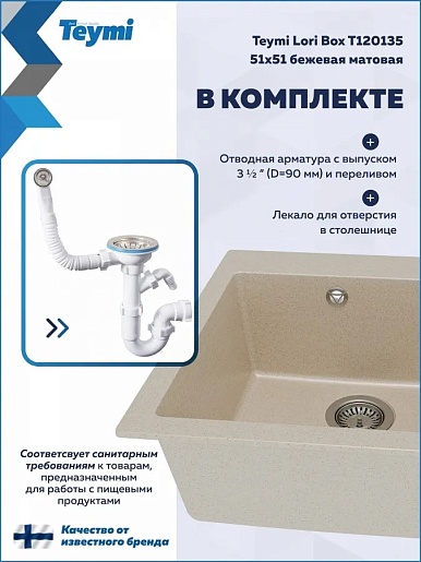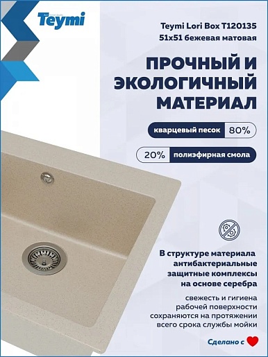 Teymi Мойка кухонная Lori Box 51 матовая бежевая