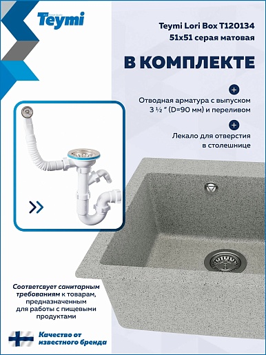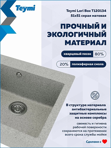 Teymi Мойка кухонная Lori Box 51 матовая серая
