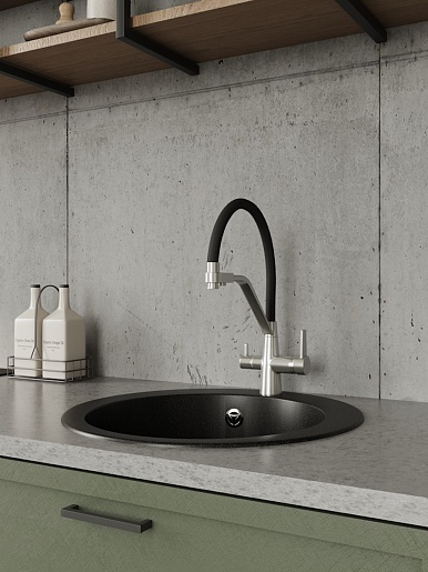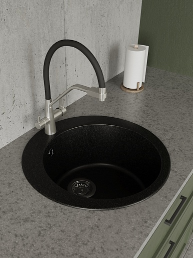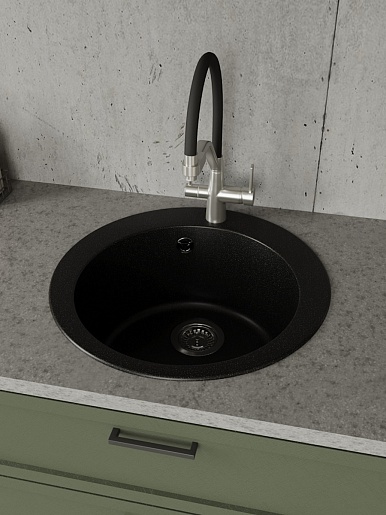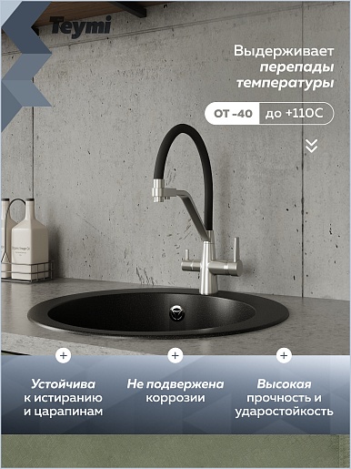 Мойка кварцевая кухонная Teymi Lori Midi D51 черная - арт. T120124.