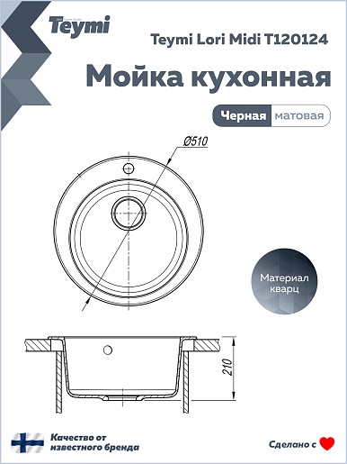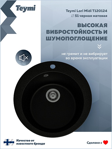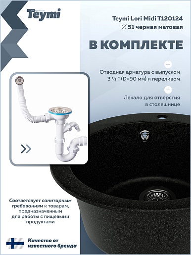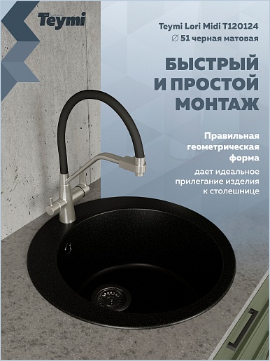 Teymi Мойка кухонная Lori Midi D51 кварцевая черная матовая