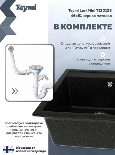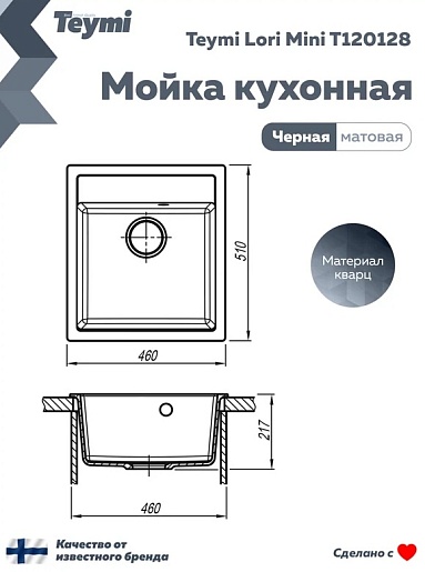 Teymi Мойка кухонная Lori Mini 45 матовая черная