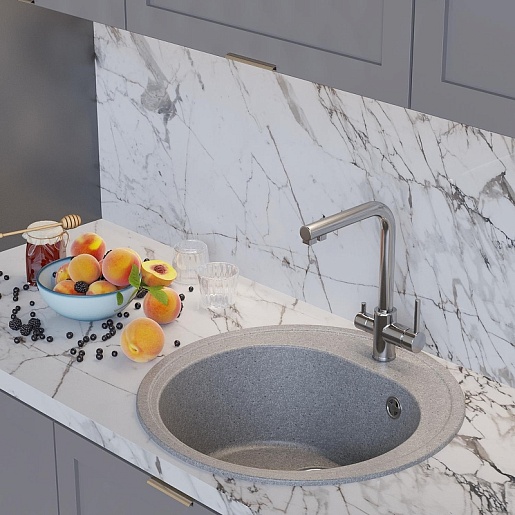 - Мойка из искусственного мрамора: прочная, бесшумная и гигиеничная, легко ремонтируется, устойчива к высоким температурам, проста в уходе, производится в разных оттенках.