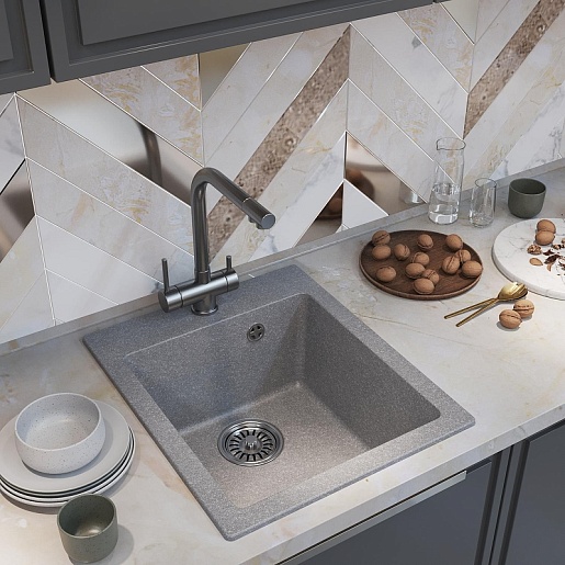- Мойка из искусственного мрамора: прочная, бесшумная и гигиеничная, легко ремонтируется, устойчива к высоким температурам, проста в уходе, производится в разных оттенках.