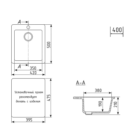 - Мин. ширина шкафа для монтажа мойки: 40 см.