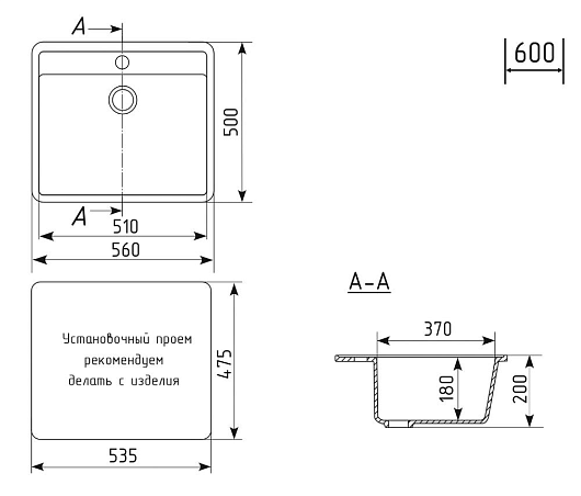 - Мин. ширина шкафа для монтажа мойки: 60 см.