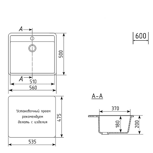 - Мин. ширина шкафа для монтажа мойки: 60 см.
