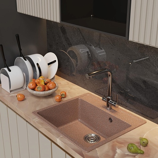 - Мойка из искусственного мрамора: прочная, бесшумная и гигиеничная, легко ремонтируется, устойчива к высоким температурам, проста в уходе, производится в разных оттенках.