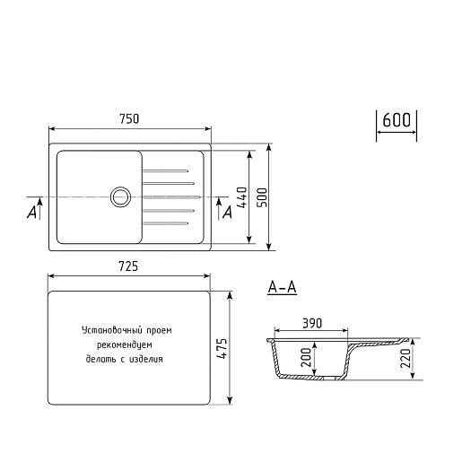 - Мин. ширина шкафа для монтажа мойки: 60 см.