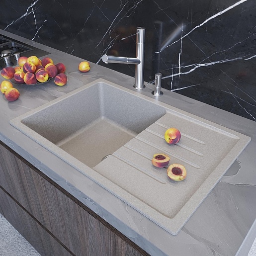 - Мойка из искусственного мрамора: прочная, бесшумная и гигиеничная, легко ремонтируется, устойчива к высоким температурам, проста в уходе, производится в разных оттенках.