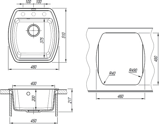 - Размер чаши (ШxГxВ): 400 х 375 х 200 мм.
