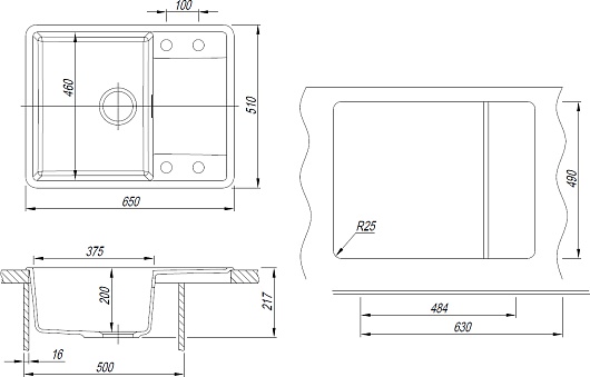 В комплекте: мойка, сифон со слив-переливом, крепеж.