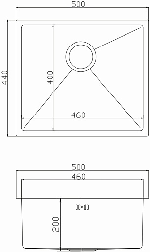 - Размер чаши (ШxДxВ): 460х400х200 мм.