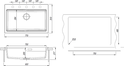 - Установочный проём (ШxГ): 750 x 490 мм.