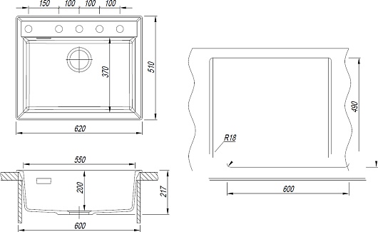 - Размер чаши (ШxГxВ): 550 х 370 х 200 мм.