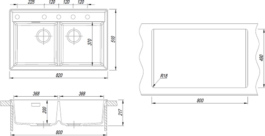 - Размер чаш (ШxГxВ): 368 х 370 х 200 мм.