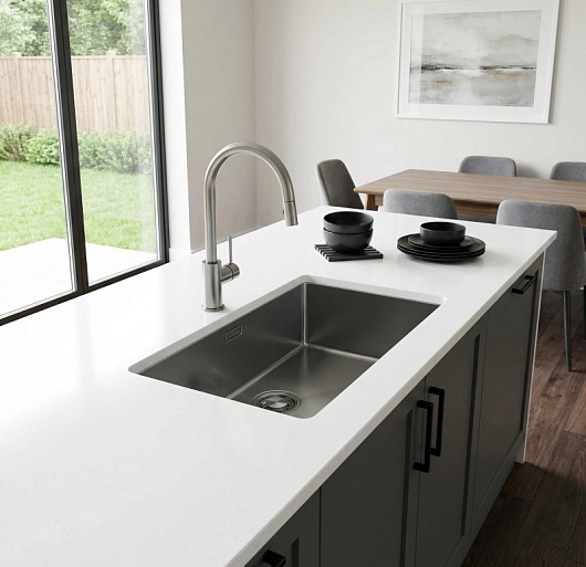 - Продукция отличается надежностью и долговечностью за счет использования качественных материалов: нержавеющей стали и искусственного камня.