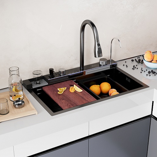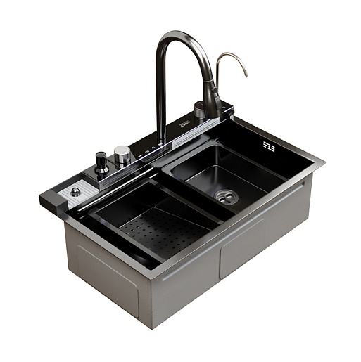 - Мойки V2.0 имеют ключевую особенность - это наличие подсветки по периметру блока управления и индикатора температуры и потока воды.
