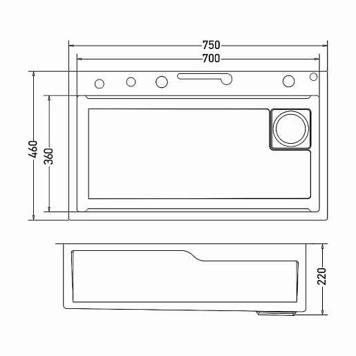 Mixline Мойка настольный монтаж 75/46 (3,0) выпуск 3 1/2 чёрный графит