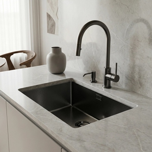 Mixline Мойка подстольный монтаж 53/43 (3,0) выпуск 3 1/2 черный графит НАНО декор