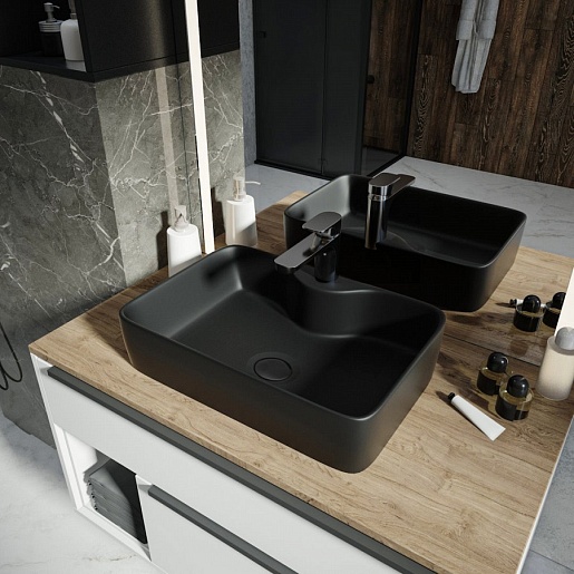 - Раковина накладная в ванную Teymi Helmi S 48 цвет черный матовый T50297.- Устанавливается на столешницу.