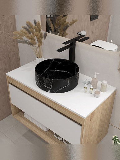 - Накладная раковина Teymi Lina D35 мрамор черный матовый.- Устанавливается на столешницу.