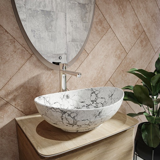 - Раковина накладная в ванную Teymi Lori 60 цвет белый мрамор T50498.- Устанавливается на столешницу.