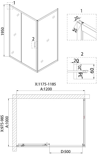 Боковая стенка Niagara Nova 100x195 NG-A100.