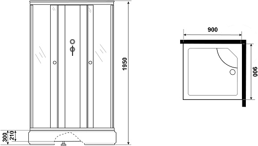 - Размер (ШxГxВ): 90x90x195 см.