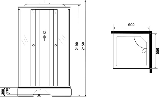 - Размер (ШxГxВ): 90x90x215 см.
