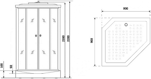 - Размер: 90x90x220 см.