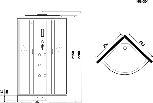 - Размеры (ШxГxВ): 90х90х220.