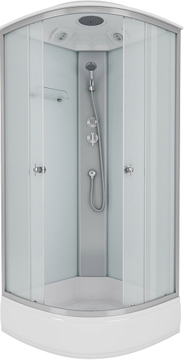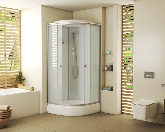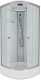 Внутри на оптимальной высоте расположена полочка для косметических средств и гигиенических принадлежностей. Имеется вентиляция, благодаря которой даже при очень высокой температуре воды внутри не будет душно.- акриловый поддон на каркасе