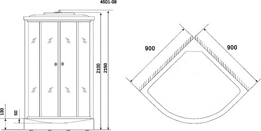 NG-4501-08 отличается и практичностью: при оптимальных габаритах 90х90х215 сантиметров она имеет форму в виде четверти круга, обеспечивающую удобное размещение в углу любой ванной. Низкий поддон (13 сантиметров) сделает удобным вход внутрь кабины: не нужно напрягаться, поднимая ногу слишком высоко. Такое свойство особенно ценно для пожилых людей и детей дошкольного возраста.