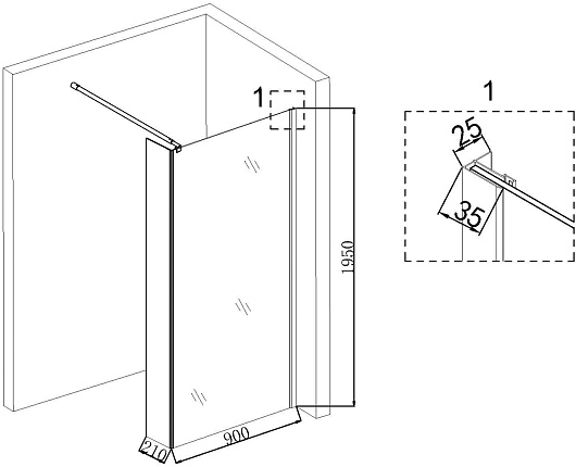 Душевая перегородка Niagara 90x195 - арт. NG-644-90GOLD.