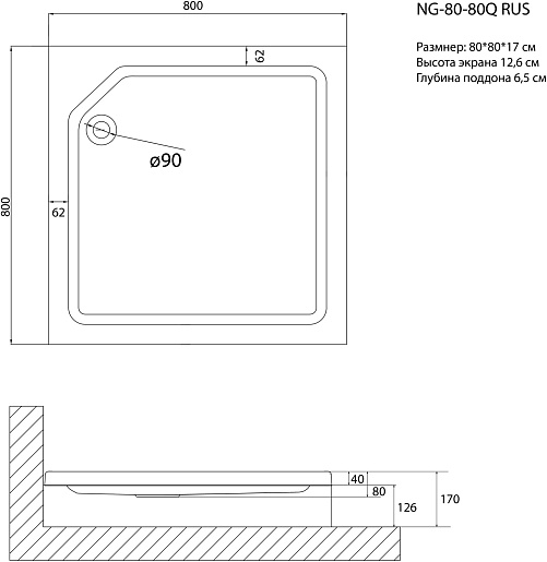 - Размер (ШхГхВ): 800х800х170 мм.